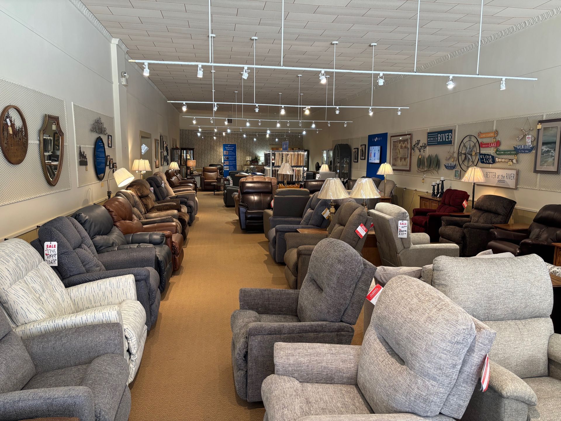 You'll find this furniture in various styles like metal tops, solid hardwood, veneer or glass tops and popular finishes from light oak to dark merlot and cherry. If you're looking for something unique, call us, and we'll do our best to find it for you